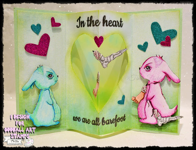 Tina here: Today I brought you a new release. I designed a pop up card with heart neckline where the happy feet are hanging: Lucky Feet #433