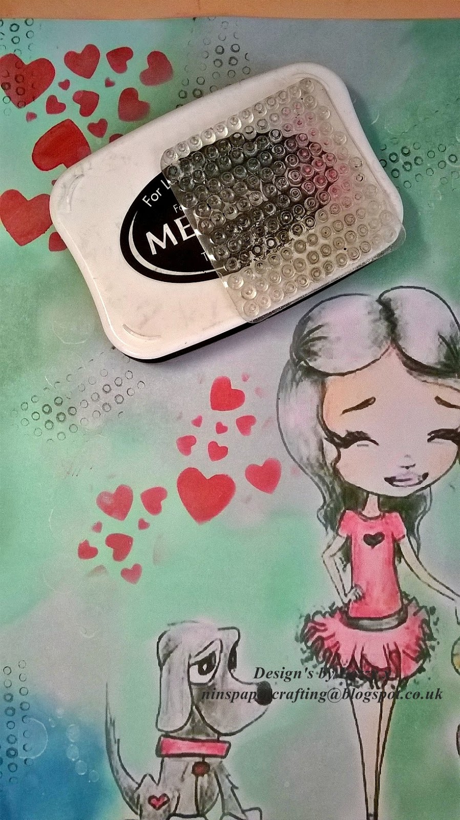 After stenciling on the back ground i used a dotty stamp and black ink
