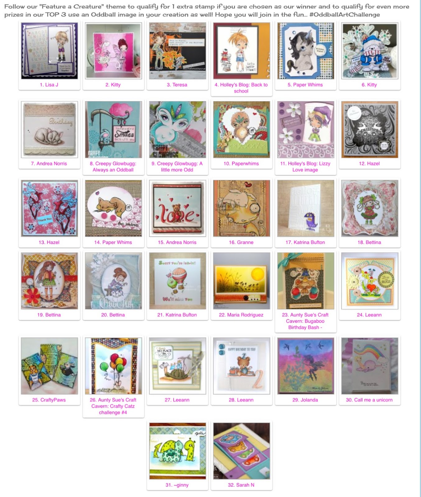 Hazel ~ First Prize and our winner of 3 + 1 digi stamps from the Oddball Art Etsy Shop.