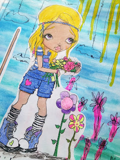 This is Ginny the Gardener No. 386 & she was just perfect for some fun art journal play to ring in the sunny season of newness! Some watercolors & fluid acrylic for the background, markers & colored pencils for the image & a pen to add in the final Messy & Sketchy touches. Remember to play & have fun with your art! Enjoy it, take time to just create....because after all, everything, even our art, grows better when it's loved!